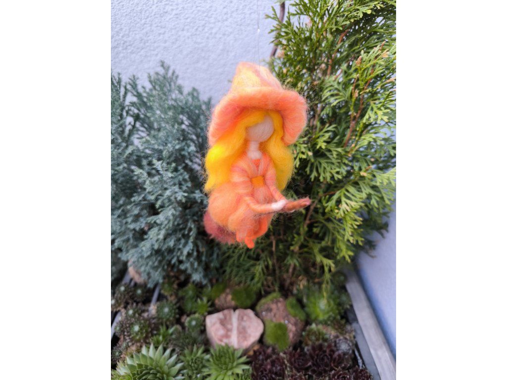 Jemná panenka z ovčí vlny, která v sobě nese pohádkový příběh a hravost. Má své koště, na kterém se může vydat na let krajinou fantazie.