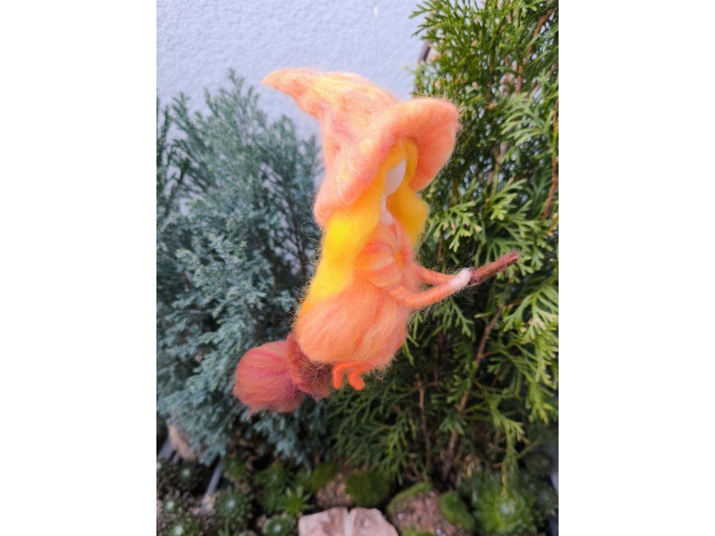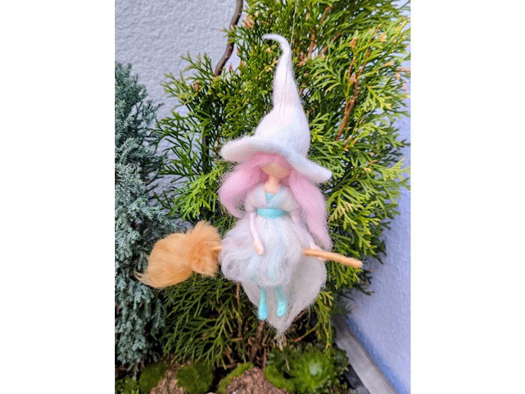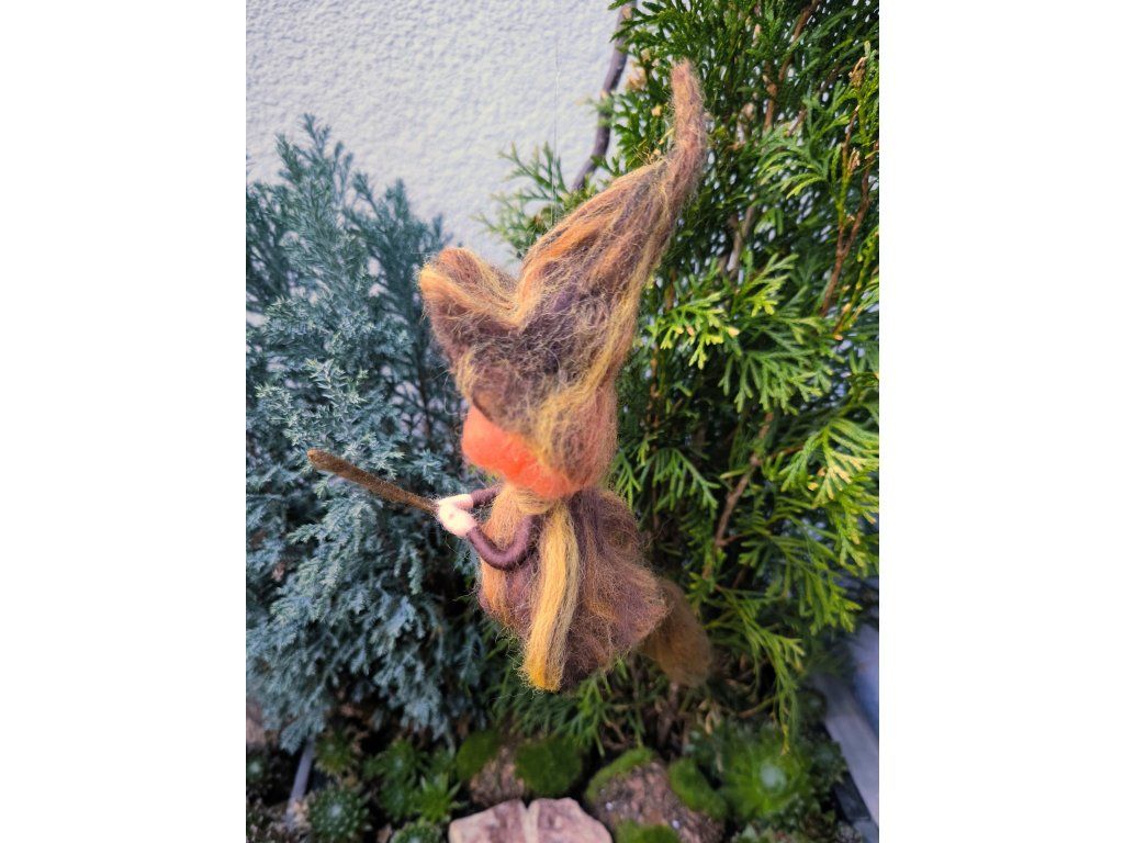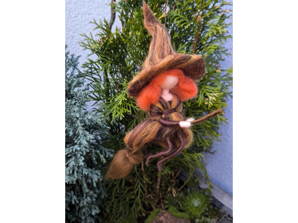 Můžete si vybrat z několika barevných variant. Každá čarodějka je originál. Vzniká z jemné ovčí vlny, s pečlivostí v každém detailu.